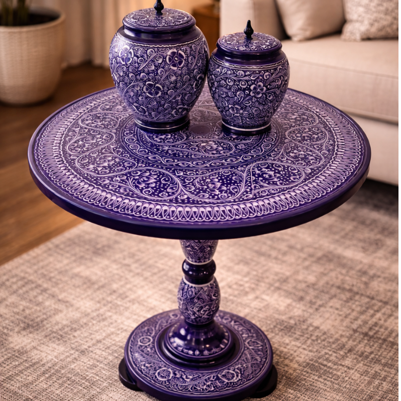 Add a unique charm to your home with this Hand-Carved Wooden Side Table in Purple. This table is not just furniture—it’s a piece of art. Carefully handcrafted by skilled artisans, every detail is carved by hand, giving it a natural and premium feel. The beautiful purple finish adds a soft yet stylish look that stands out in any room.
