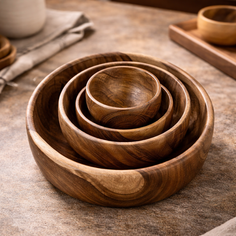 Handcrafted Wooden Bowl Set – Natural Style for Everyday Living