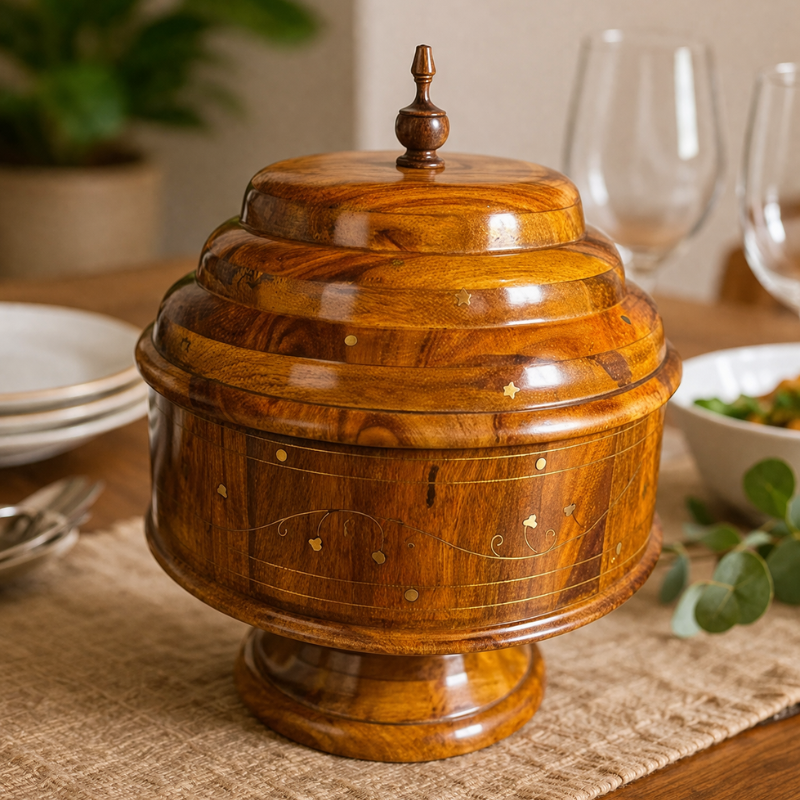 - Handcrafted wooden storage container for buffet & kitchen use