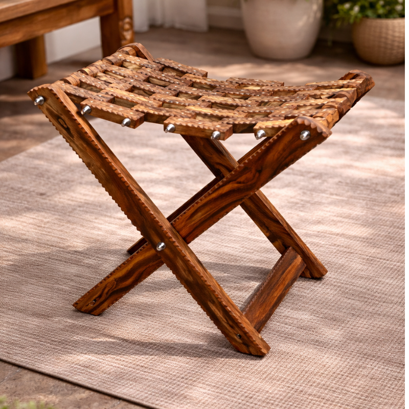- Handcrafted wooden folding stool for home use