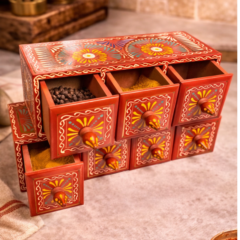 Looking for a useful and thoughtful gift? This handcrafted wooden masala box with drawer storage is a perfect choice for housewarmings, weddings, or holidays. It’s practical, stylish, and something every kitchen needs.