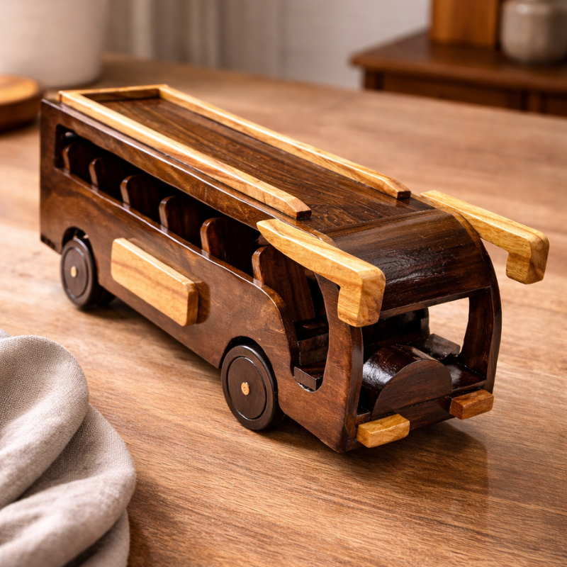 Handcrafted Wooden Toy Bus for Kids