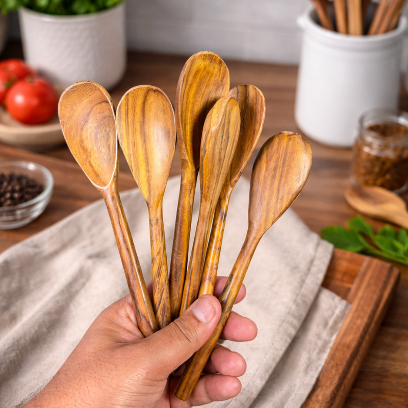 Each spoon is carefully crafted with a smooth finish and comfortable grip, so you can cook for longer without discomfort. The natural wood texture also adds a warm, elegant look to your kitchen, making it both functional and stylish.