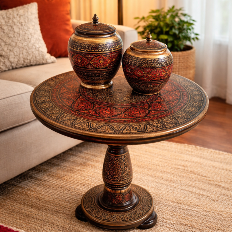 Decorative Accent Table Set with Ornate Jars