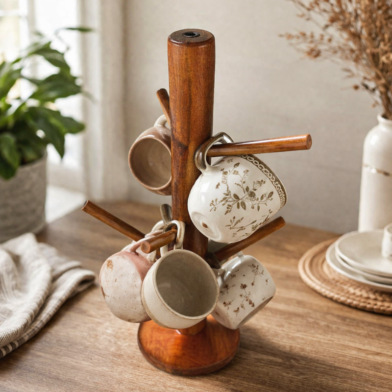 Wooden Mug Tree Stand – Stylish & Space-Saving Kitchen Organizer
